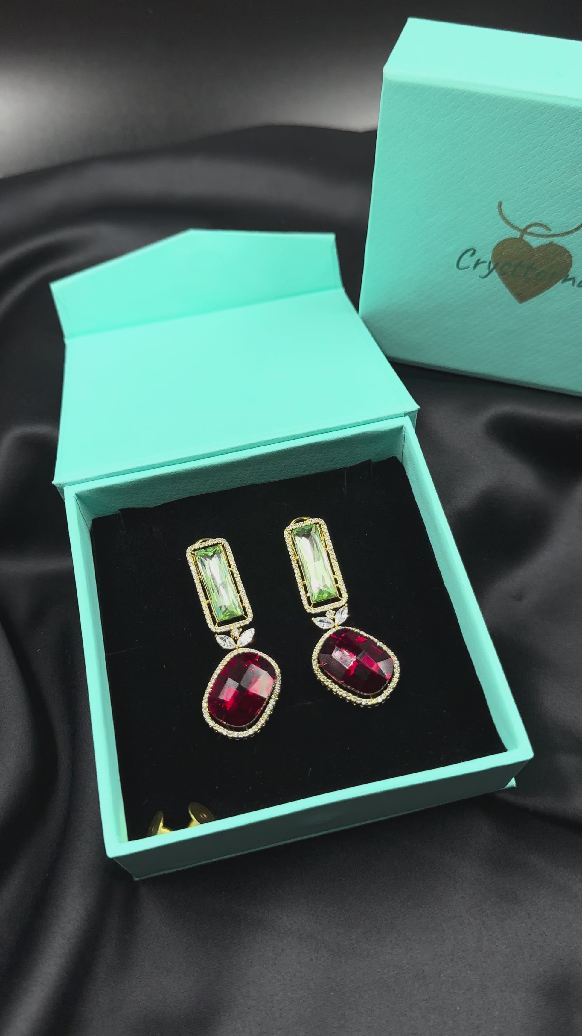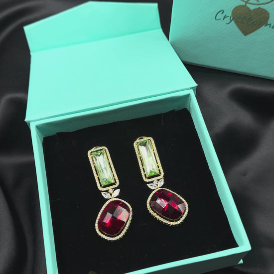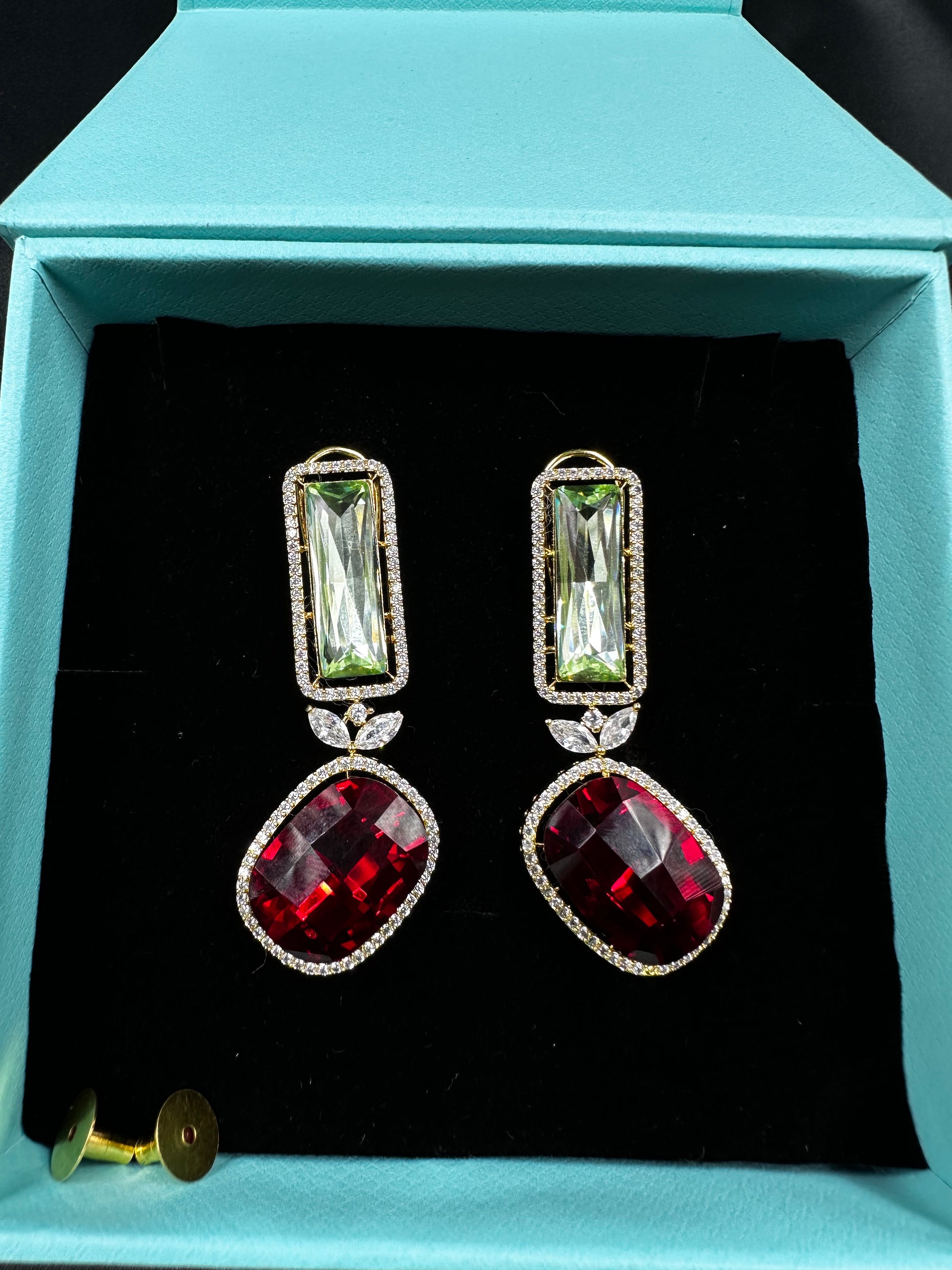 Striking, Vibrant Red & Green CZ earrings